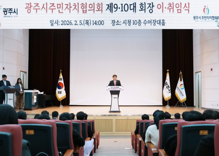 [뉴스노크=김인호 기자] 광주시는 5일 시청 수어장대홀에서 ‘제9·10대 광주시 주민자치협의회장 이·취임식’을 개최했다.