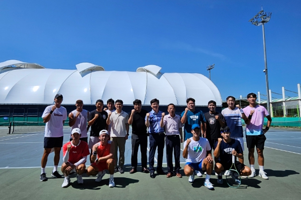 특히 이번 훈련은 체력·기술 훈련을 넘어, 당진시청 직장운동경기부 테니스팀과의 합동훈련 프로그램이 포함돼 실전 감각을 극대화하는 데 중점을 뒀다. 양 팀은 복식 및 단식 경기 중심의 스파링, 전략 분석 등 실전 상황에 가까운 훈련을 통해 경기운영능력과 전술적 완성도를 끌어올리고 있다.