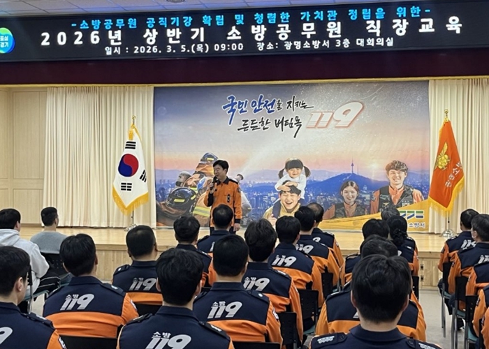 [뉴스노크=김인호 기자] 광명소방서는 5일 본서 3층 대회의실에서 전 직원을 대상으로 2026년 상반기 소방공무원 직장교육을 실시했다.
