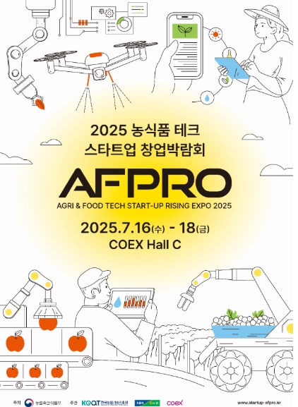 [뉴스노크=김인호 기자] 농림축산식품부는 농식품 분야 첨단기술을 홍보하고, 농식품 분야 유망 창업기업의 판로확보와 투자유치를 지원하기 위해 '2025 농식품 테크 스타트업 창업박람회(AFPRO 2025)'를 7월 16일부터 18일까지 3일간 서울 삼성동 코엑스(Hall C)에서 개최한다.