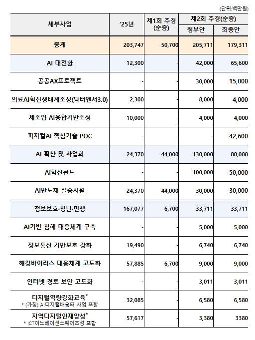 이번 제2회 추경은 경기진작을 위해 AI 전환과 국민 체감도 제고에 초점을 맞추어, AI의 활용 확산을 통한 우리나라 산업을 고도화하고, 공공서비스를 혁신하는 한편, 국가 정보보호체계를 강화하기 위한 내용을 담고 있다.