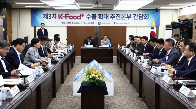 [뉴스노크=김인호 기자] 농림축산식품부 송미령 장관은 8월 20일, 서울 에이티(aT) 센터에서 주요 농식품 및 농산업 수출기업, 유관기관과 함께 2025년 제3차'케이-푸드 플러스(K-푸드+) 수출확대 추진본부 간담회'를 개최했다.