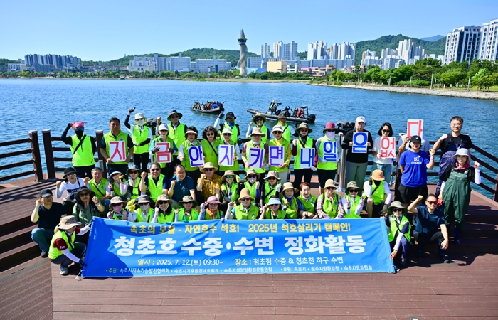 [뉴스노크=김인호 기자] 속초시는 7월 12일, 청초정부터 엑스포타워에 이르는 청초호 일원에서 ‘2025 청초호 수중·수변 정화활동’을 성공적으로 마쳤다. 이번 정화활동은 석호의 자연적 가치와 생태계 보전을 위한 실천적 노력으로, 시민과 함께하는 환경보전 행사의 의미를 더했다.