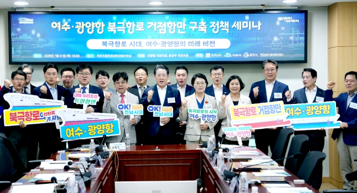 [뉴스노크=김인호 기자] 전라남도는 7월 31일 국회에서 ‘여수·광양항 북극항로 거점항만 구축 정책 세미나’가 열려 여수·광양항의 미래 비전과 정책적 지원 방안 등을 논의했다고 밝혔다.