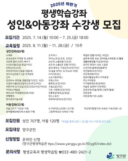▲ 양구군, 25일까지 하반기 평생학습강좌 수강생 모집 |