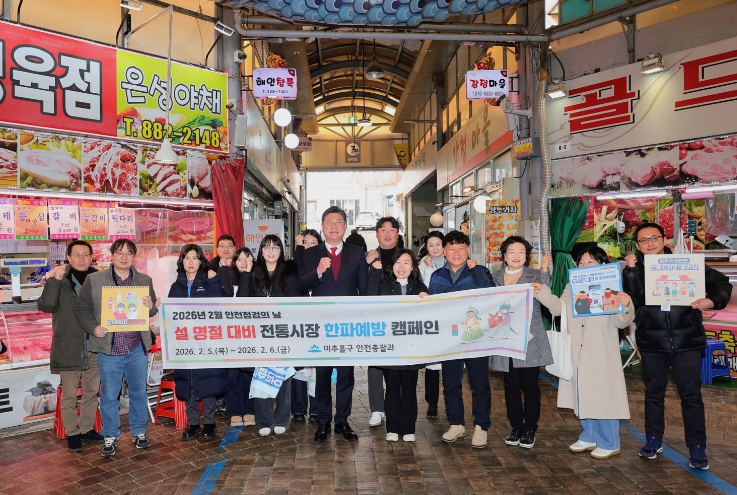 [뉴스노크=김인호 기자] 인천 미추홀구는 설 명절을 앞두고 5일부터 6일까지 총 이틀간 관내 전통시장을 방문해 ‘동절기 한파 예방 캠페인 및 화재 대비 집중 안전 점검’을 실시한다.