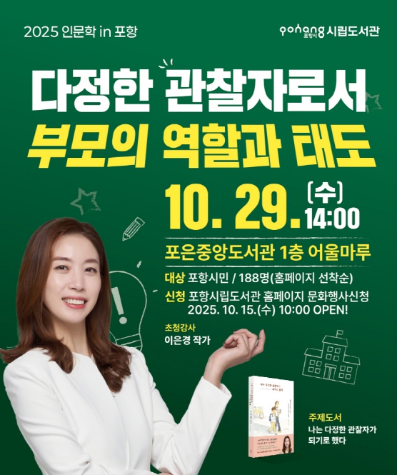 | ▲ 인문학 in 포항 ‘다정한 관찰자로서 부모의 역할과 태도‘ 홍보물. |