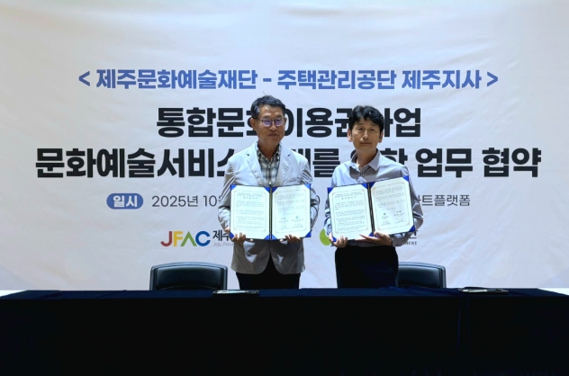 [뉴스노크=김인호 기자] 제주문화예술재단과 주택관리공단 제주지사는 지난 13일 통합문화이용권 사업(문화누리카드)과 연계한 문화예술 서비스 확대를 위해 업무협약을 체결했다.