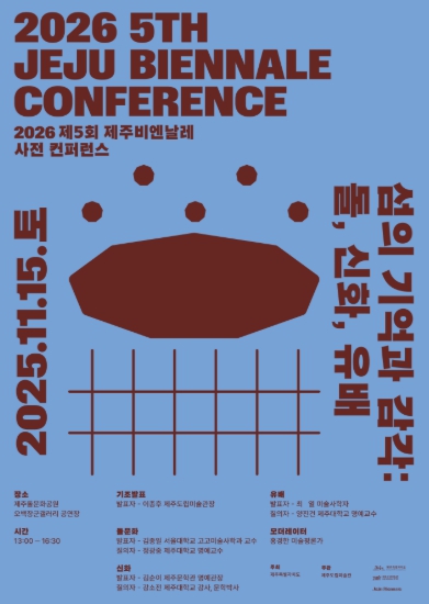 이번 컨퍼런스는 ‘섬의 기억과 감각 - 돌, 신화, 유배'를 주제로 제주의 자연과 생태, 역사적 사건과 신화적 이야기를 예술적 관점에서 조명한다. 이 행사는 2026년 제5회 제주비엔날레의 방향성을 함께 고민하고 의미 있는 대화의 장을 마련하기 위해 기획됐다.