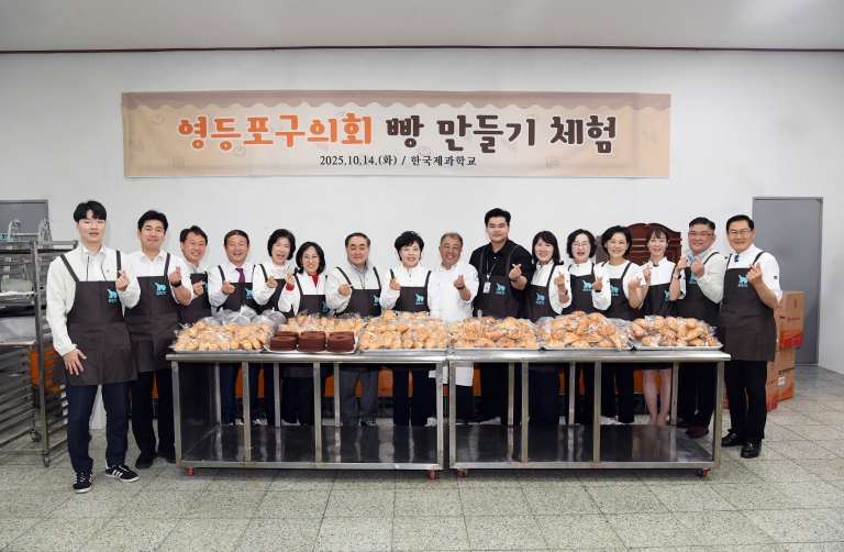 참여자들은 한국제과학교 김영석 이사장의 지도 아래 반죽부터 성형, 굽기, 포장 등의 과정을 직접 체험하며 소금빵과 쉬폰케이크 300여 개를 완성했다. 제작된 빵은 영등포구 사회복지협의회를 통해 관내 지역아동센터 등에 전달됐다.