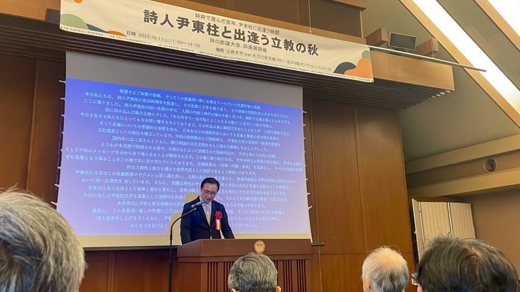 [뉴스노크=김인호 기자] 임태희 경기도교육감이 11일 일본 도쿄 릿쿄대학에서 열린 ‘윤동주 시인 서거 80주년 기념 시낭송 대회 및 기념비 제막식’에 참석했다.