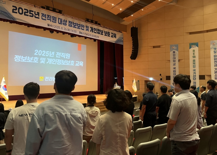[뉴스노크=김인호 기자] 전라남도는 26일 도청 김대중강당에서 전 직원을 대상으로 2025년 전 직원 대상 정보보안 및 개인정보 보호 교육을 실시, 사이버위협 대응·인공지능(AI) 활용 시 보안수칙 등 실무능력을 높였다.
