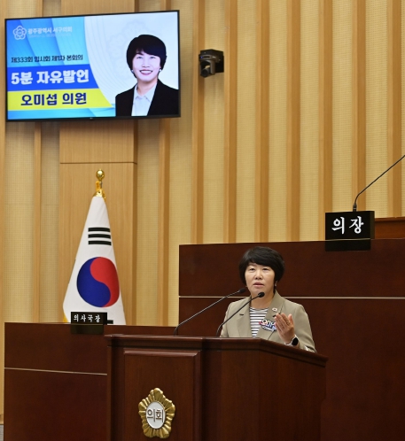 [뉴스노크=김인호 기자] 광주광역시 서구의회 오미섭 의원(더불어민주당)이 8일 열린 제333회 임시회 본회의장에서 다회용기 사용 활성화와 환경미화원 근로환경 개선을 위해 5분자유발언을 진행했다.