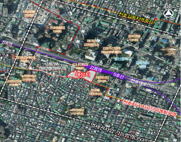 성내동 179번지 일대는 지역주택조합 방식으로 사업 추진 중인 구역으로, 이번 결정으로 최근 통합심의를 완료한 강동역A(성내동 19-1번지 일대) 역세권 활성화사업과 더불어 강동역 일대 변화가 본격화될 전망이며, 사업 추진에도 탄력이 붙을 것으로 기대된다.
