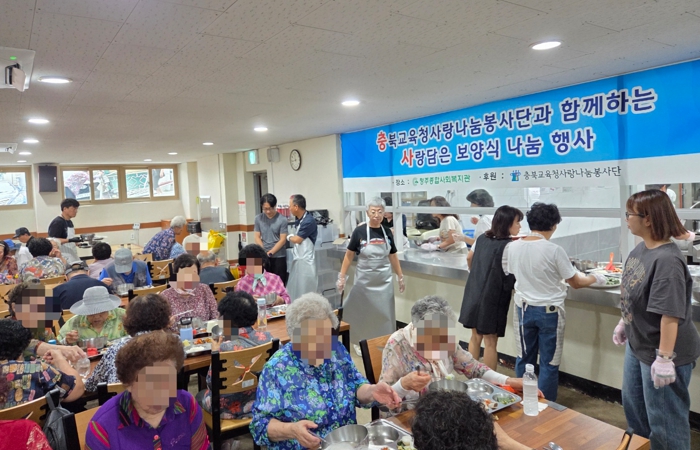 [뉴스노크=김인호 기자] 충북교육청사랑나눔봉사단이 9일, 청주 신봉동에 위치한 청주종합사회복지관 구내식당에서‘사랑의 갈비탕 점심 나눔’행사를 진행했다.
