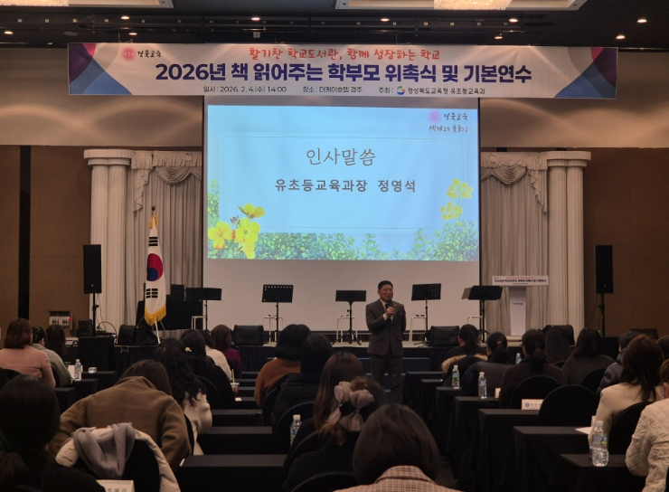 [뉴스노크=김인호 기자] 경북교육청은 4일 경주시에 있는 더케이호텔경주에서 도내에서 선발된 책 읽어주는 학부모 120명이 참석한 가운데 ‘2026년 책 읽어주는 학부모 위촉식 및 기본 연수’를 개최했다고 밝혔다.