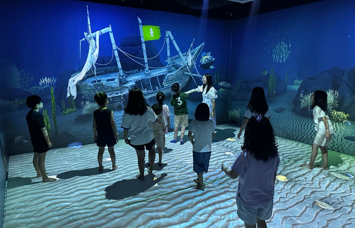 4면의 벽과 바닥 1면을 활용한 5면 프로젝션 기술을 기반으로 어린이들이 마치 동화 속 주인공이 된 듯한 몰입형 실감 콘텐츠를 제공한다.