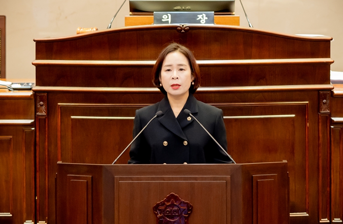 ▲ 남양주시의회 313회 2차 본회의에서 정현미 의원이 5분발언을 하고 있다. |