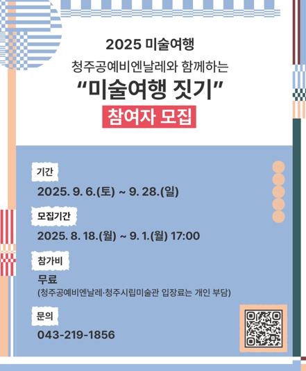 [뉴스노크=김인호 기자] 2025 청주공예비엔날레를 더욱 알차게, 주머니 가볍게 즐기는 방법! 미술여행 동행자 모집이 시작됐다.