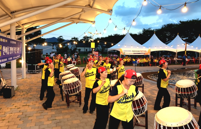 청안면 상인회는 치킨과 맥주를 협찬해 한여름밤의 분위기를 더욱 뜨겁게 했다.