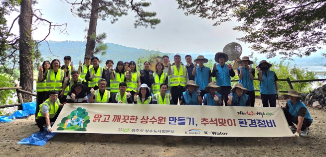 [뉴스노크=김인호 기자] 청주시 상수도사업본부와 한국수자원공사는 추석을 앞둔 30일 귀성객 등에게 더 맑고 깨끗한 상수원을 공급하기 위해 상수원보호구역인 대청호 일원에서 도로변 쓰레기를 수거하는 환경 정비 활동을 추진했다.
