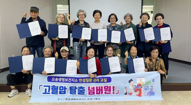 [뉴스노크=김인호 기자] 청주시 흥덕보건소는 30일 오송생명과학단지 건강증진형 보건지소에서 지역 주민의 고혈압 예방과 자가건강관리 능력 향상을 위한 ‘고혈압 탈출 넘버원!’ 프로그램이 성황리에 마무리했다.