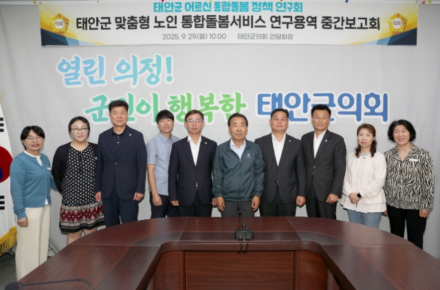[뉴스노크=김인호 기자] 태안군의회 의원연구단체 ‘태안군 어르신 통합돌봄 정책 연구회’는 9월 29일 오전 10시, 태안군의회 간담회장에서 '태안군 맞춤형 노인 통합돌봄서비스 정책 연구' 중간보고회를 개최했다.