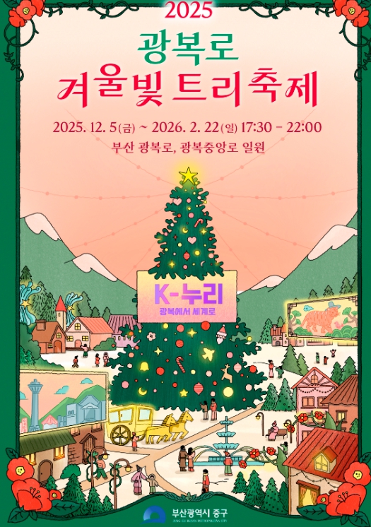 [뉴스노크=김인호 기자] 부산 중구는 『2025 광복로 겨울빛 트리축제』를 2025년 12월 5일부터 내년 2월 22일까지 80일간 추진한다. 축제의 시작을 알리는 점등 개막식은 12월 5일 금요일 오후 5시 30분 광복로 시티스폿 메인트리 앞 특설무대에서 개최된다.