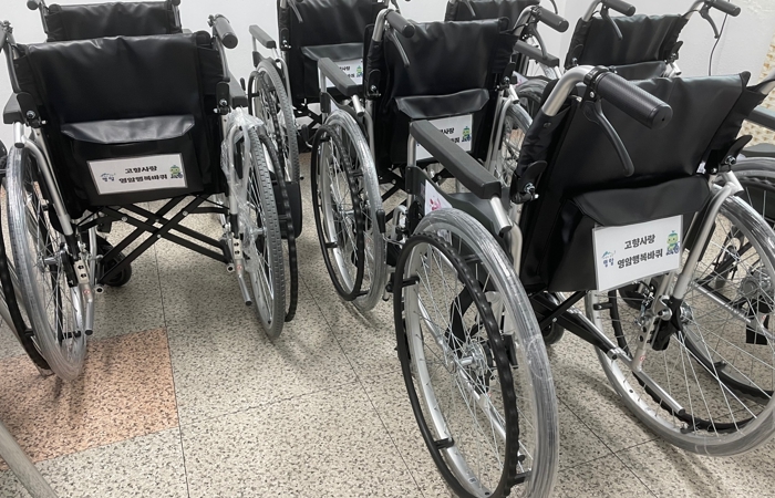 [뉴스노크=김인호 기자] 영암군이 4일 고향사랑기부금으로 ‘행복 바퀴 휠체어 지원사업’으로 8대의 휠체어를 교체해 무료 대여를 이어가고 있다.