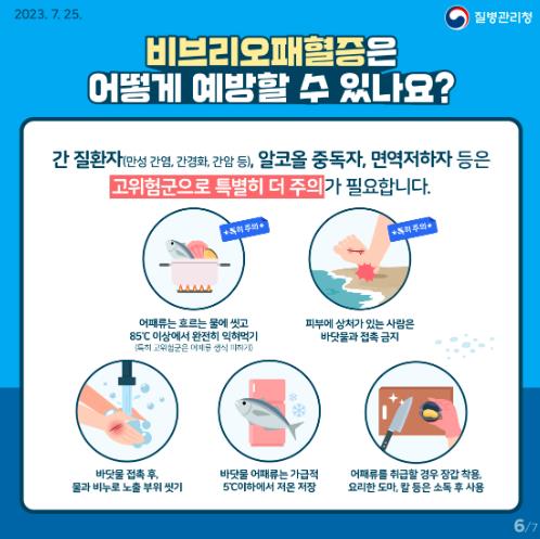 또한 어패류는 흐르는 물에 깨끗이 씻은 뒤, 85℃ 이상에서 충분히 익혀 섭취해야 한다.