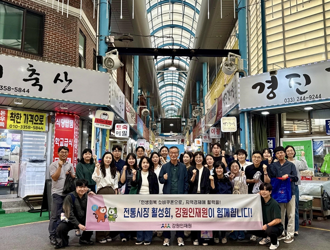 [뉴스노크=김인호 기자] 강원인재원은 2025년 추석 명절을 맞이하여 전통시장에 활력을 불어넣고 지역경제 회복을 지원하기 위해 9월 30일 춘천 후평일단지시장에서 장보기 행사를 진행했다고 밝혔다.