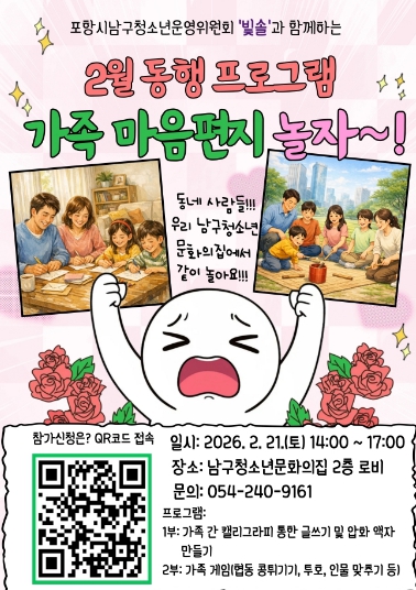 | ▲ 포항시남구청소년위원회 2월 동행프로그램 ‘가족 마음편지 놀자’ 안내 포스터. |