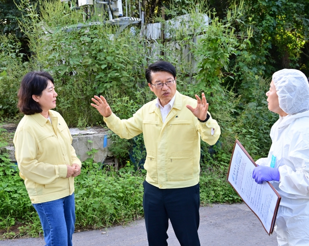 방문 농장은 852두의 돼지 사육 농장으로 김 부지사는 농장 내 소독시설과 출입통제 이행상황을 집중적으로 살펴보고, 농장주와 방역 관련 개선방안 등에 대해 의견을 나눴다.