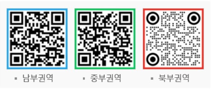 ▲ 남부권역 큐알(QR)코드: 고촌제1근린공원(고촌읍 신곡리 1281), 인향공원(고촌읍 신곡리 890), 풍무제44호어린이공원(풍무동 211), 봉화어린이공원(북변동 720), 풍년근린공원(북변동 831), 사우제5어린이공원(사우동 1043), 걸포중앙공원(걸포동 1553), 중부권역 큐알코드: 한강중앙공원(장기동 1539), 주제공원8호(운양동 1441-2), 어린이공원13호(운양동 1293-1), 북부권역 큐알코드: 마송중앙공원(통진읍 마송리 525), 마리미공원(마산동 634-1),공공공지8-2호(구래동 6891-1) |