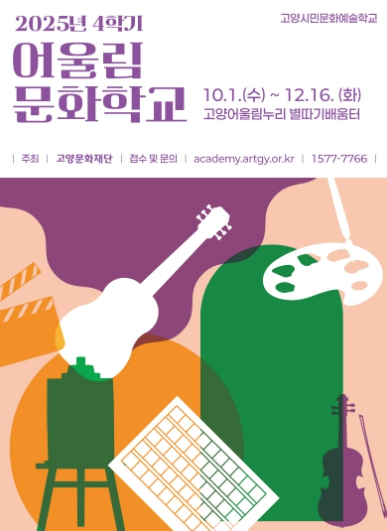 [뉴스노크=김인호 기자] 고양문화재단이 운영하는 고양시민문화예술학교 ‘2025 어울림문화학교 4학기’가 10월 1일부터 12월 16일까지 진행된다.