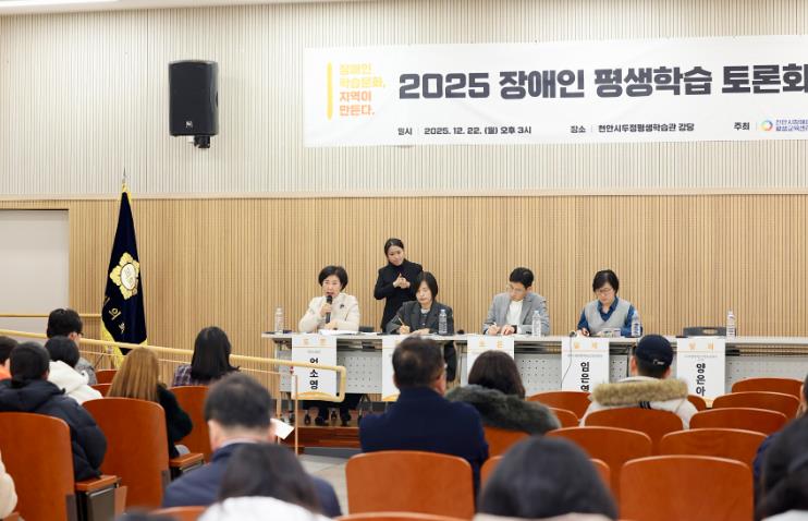 [뉴스노크=김인호 기자] 천안시의회 엄소영 의원(더불어민주당, 부성1동·성거읍)은 22일 두정동평생학습센터에서'장애인 학습문화, 지역이 만든다' 정책토론회를 개최하고, 천안시 장애인 평생교육의 현황과 구조적 한계를 점검하며 지역 기반 학습환경 개선 방안을 논의했다.