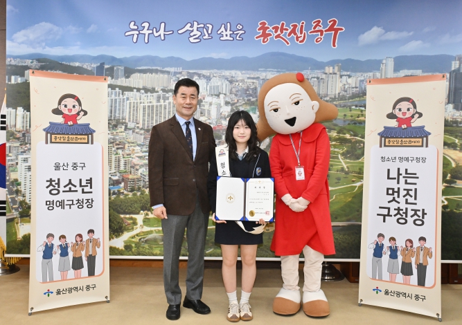 [뉴스노크=김인호 기자] 울산 중구가 2월 24일 성신고등학교 1학년 김하은 학생을 ‘1일 청소년 명예구청장’으로 위촉했다.