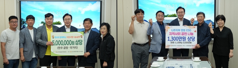 [뉴스노크=김인호 기자] 전라남도 나주시는 (사)전국한우협회 나주시지부와 (사)대한한돈협회 나주지부가 지난 24일 500만 원 상당의 한우 국거리·곰탕 110박스와 1300만 원 상당의 한돈 565박스(1130kg)을 어려운 이웃을 위해 각각 기탁했다고 밝혔다.