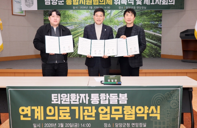 [뉴스노크=김인호 기자] 담양군은 20일 군청 면앙정실에서 관내 2개 의료기관과 ‘퇴원환자 통합돌봄 연계 의료기관 업무협약(MOU)’을 체결했다.