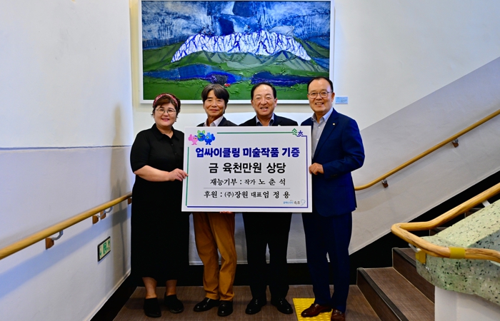 기증 작품은 ‘속초항’과 ‘울산바위’를 주제로 한 2점으로, 속초의 상징성과 자연환경의 아름다움을 재료와 주제로 동시에 표현한 작품이다. 총작품가는 6,000만 원 상당으로, 업사이클링 아티스트 노춘석 작가의 재능기부와 ㈜장원 엄정용 대표의 재료비 후원으로 완성됐다.