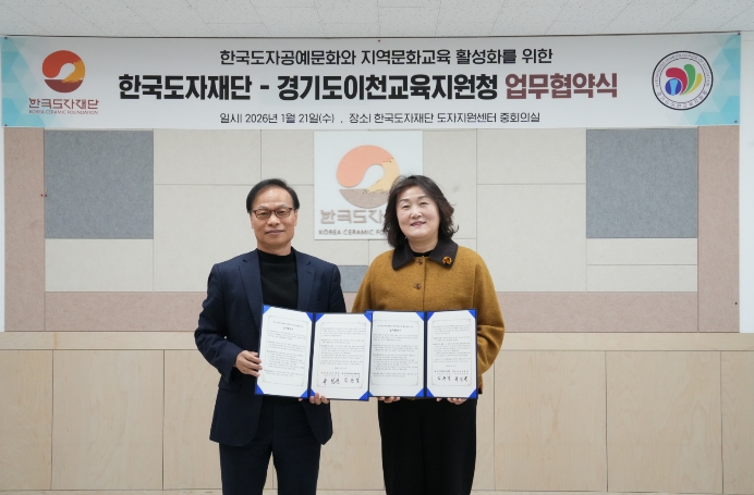 [뉴스노크=김인호 기자] 이천교육지원청은 1월 21일 한국도자재단과 이천시 관내 문화예술교육사업 및 학교교육프로그램 활성화를 위한 업무협약을 체결했다.
