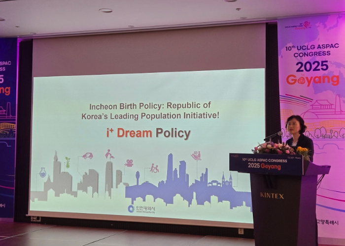 [뉴스노크=김인호 기자] 인천광역시는 2025년 9월 24일부터 26일까지 고양 킨텍스 제1전시장에서 열리는 '2025년 제10차 세계지방정부연합 아시아‧태평양지부(UCLG ASPAC) 고양총회'에 참가해, ‘가족친화도시: 출산율 증가 및 가족지원에 적합한 도시환경 조성’을 주제로 한 서브포럼에서 인천형 출생정책의 성과를 세계 지방정부와 공유했다고 밝혔다.