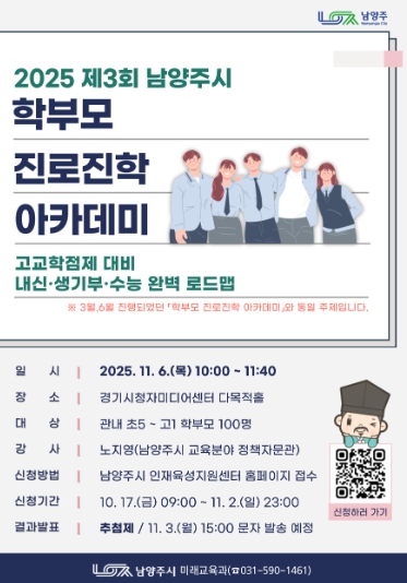 ▲ 남양주시, 11월 ‘학부모 진로진학 아카데미’ 참여자 모집