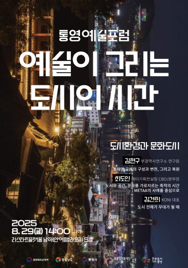 [뉴스노크=김인호 기자] (재)통영문화재단(이사장 천영기) 통영문화도시센터는 오는 8월 29일 오후 2시 통영리스타트플랫폼 5층 남해안여행라운지에서 ‘2025 통영예술포럼’을 개최한다.