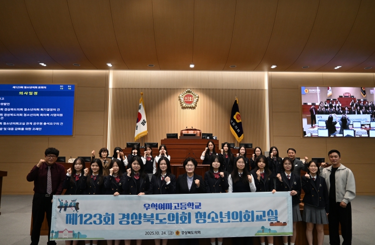 이날 상주 우석여자고등학교 1~2학년 학생들은 실제 본회의 진행 방식에 따라 도의원 역할을 직접 수행하며 의정활동에 대한 이해를 높이고 민주적 의사결정 과정을 몸소 체험했다.