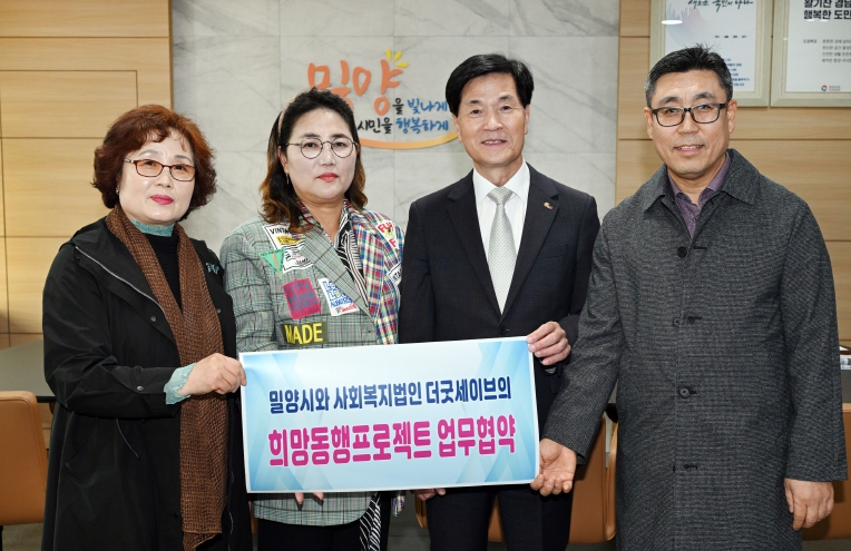 [뉴스노크=김인호 기자] 경남 밀양시는 5일 시장실에서 사회복지법인 더 굿 세이브(회장 박영태)와 드림스타트 아동 30여 명을 대상으로 1년간 도시락 및 맞춤형 서비스 지원을 위한 ‘희망동행 프로젝트’ 업무협약을 체결했다고 밝혔다.