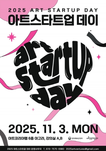 [뉴스노크=김인호 기자] 문화체육관광부(장관 최휘영)가 주최하고 예술경영지원센터(대표 김장호)가 주관하는 ‘2025 아트 스타트업 데이’가 오는 11월 3일(월) 서울 종로구 아트코리아랩(Arts Korea Lab)에서 개최된다.