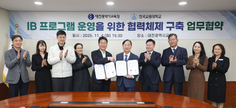 이번 업무협약은 설동호 교육감과 차우규 한국교원대학교 총장이 참석하여 대전시교육청과 지역대학의 협력체제를 구축하여 대전 IB 프로그램의 안정적 운영을 위한 교원 연수 등 지원 사항을 약속했다.