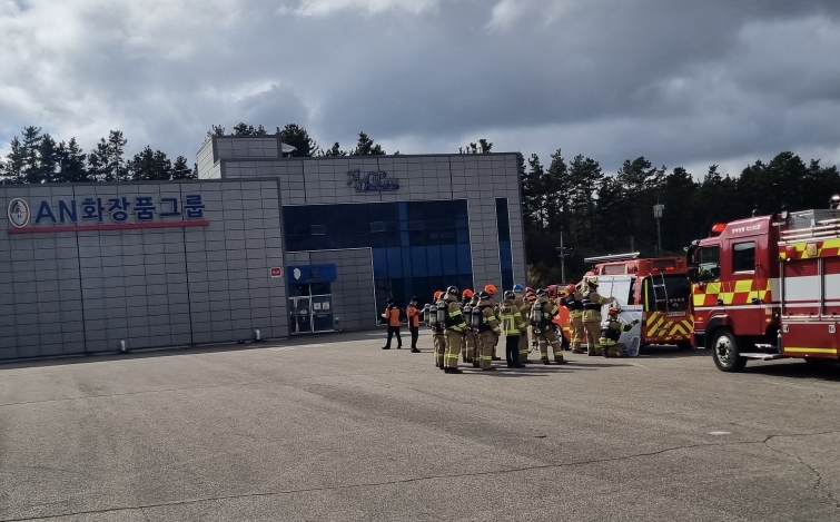 [뉴스노크=김인호 기자] 영동소방서장는 24일 황간면에 위치한 AN화장품 공장에서 가상 화재상황 부여에 따른 충북형 화재진압 현장지휘 전술 훈련을 실시했다.