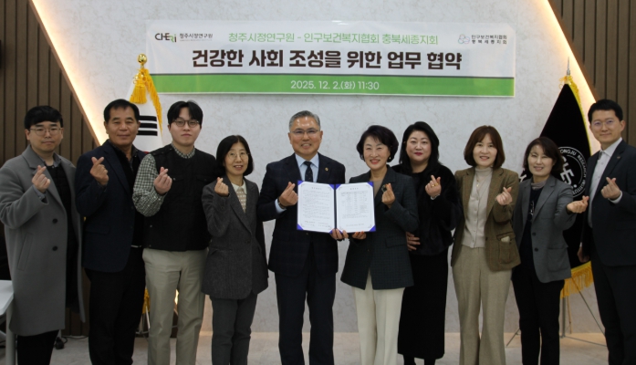 청주시정연구원은 이번 협약을 통해 지역 보건정책 기반을 강화하고, 인구 변화에 대응하는 실효성 높은 연구와 협력사업을 추진해 시민 삶의 질 향상에 기여한다는 방침이다.